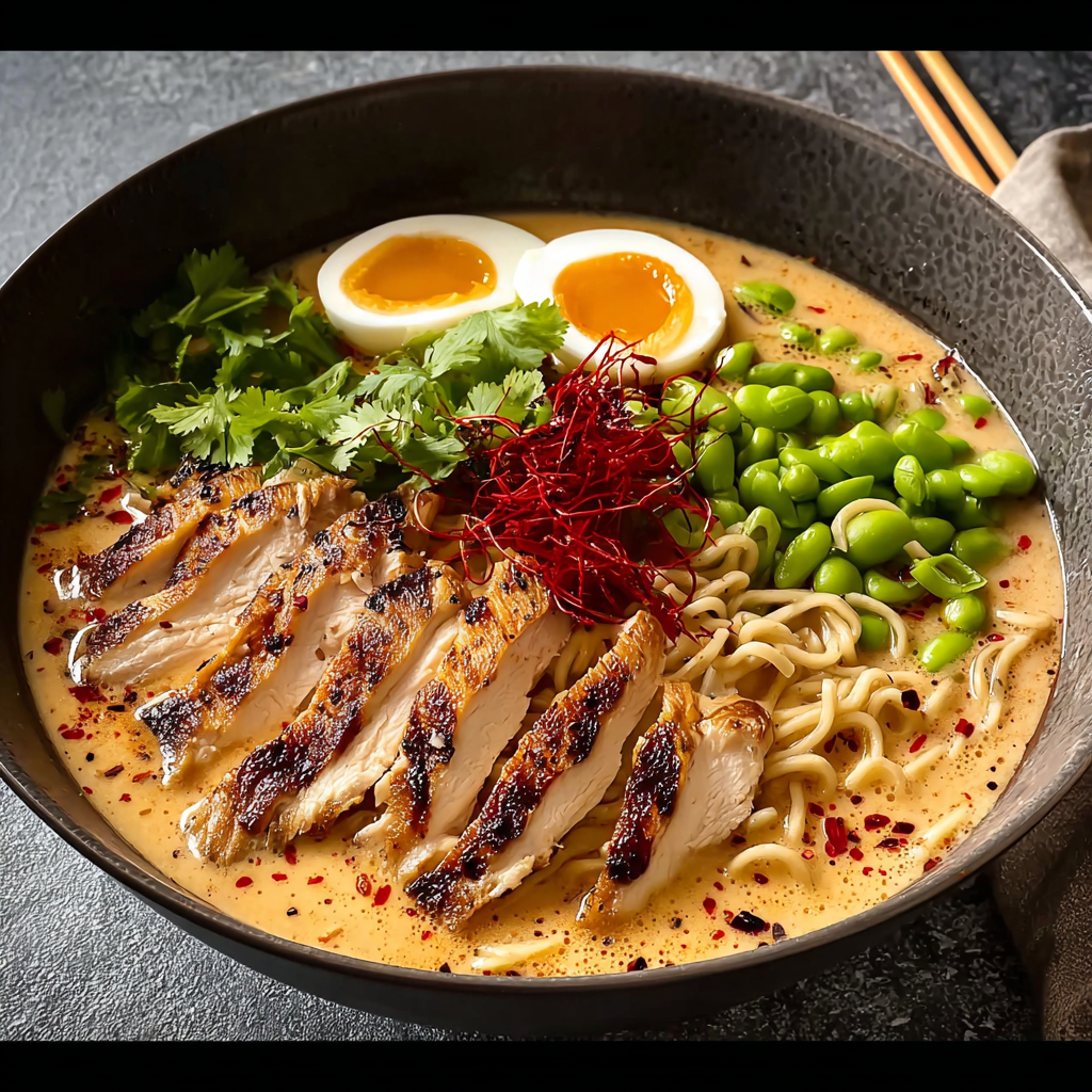 Creamy Sun-Dried Tomato Ramen with Pan-Seared Chicken