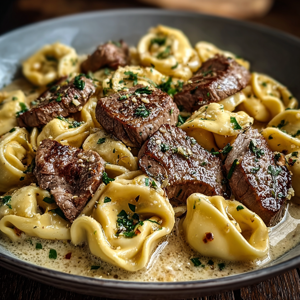 Tortellini Steak Slices with Crushed Garlic